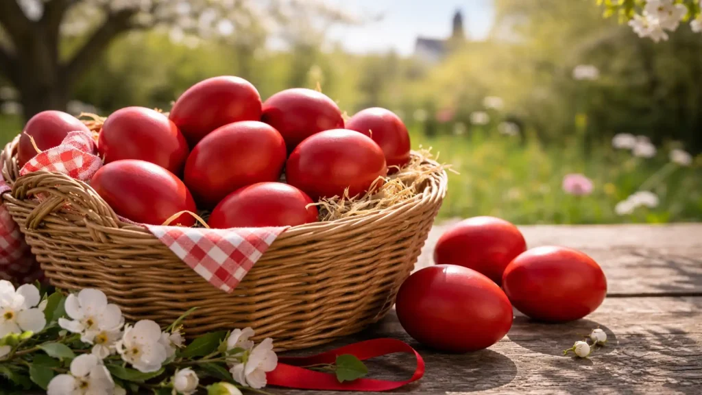 În Grecia, ouăle de Paște sunt vopsite în mod tradițional în roșu, simbolizând sângele lui Iisus.