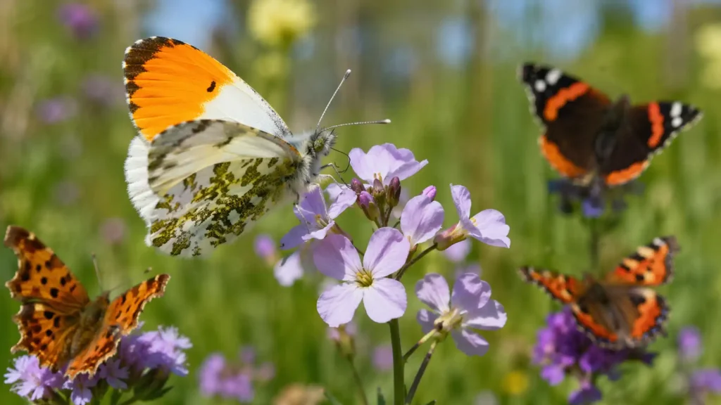 Fluturele Orange Tip, cu aripi albe decorate cu pete negre și galbene și o zonă portocalie intensă la vârf, se descurcă foarte bine în prezent, având populații mult mai mari decât în anii 1970.